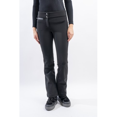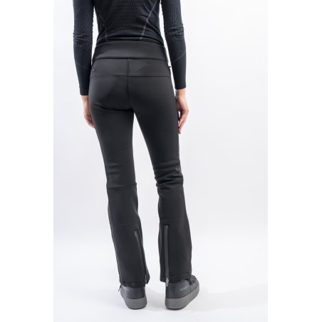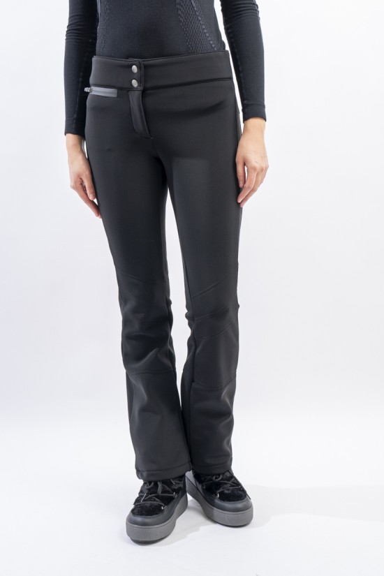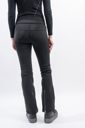Pantalone sci in Schoeller svizzero. Resistente al vento e all'acqua è altamente traspirante e confortevole grazie all'alta elasticità del tessuto. Alto in vita, slim fit e performante. A maggior protezione dagli agenti atmosferici la ghetta al fondo. Foderato internamente in fleece è caldo e perfetto sulla neve anche nelle giornate più fredde.