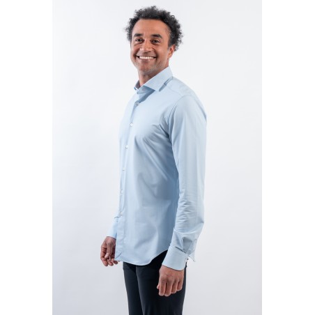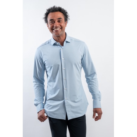 Camicia active & business in tessuto stretch. Comoda e funzionale, realizzata in tessuto tecnico particolarmente confortevole e traspirante. Per uno stile di vita dinamico e sempre in movimento. Vestiblità tailor fit.