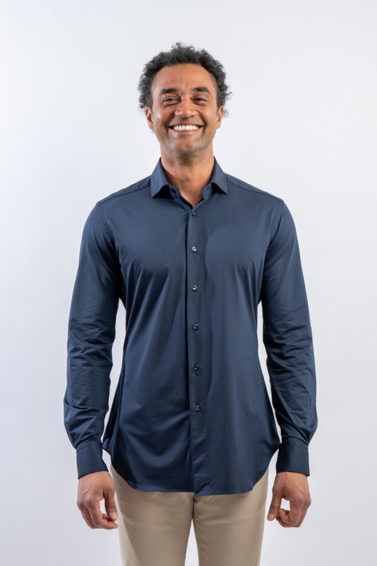 Camicia active & business in tessuto stretch. Comoda e funzionale, realizzata in tessuto tecnico particolarmente confortevole e traspirante. Per uno stile di vita dinamico e sempre in movimento. Vestiblità tailor fit.