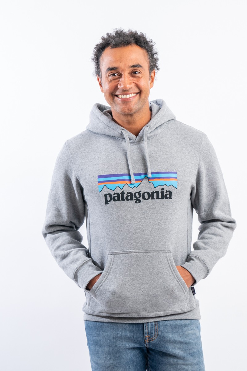 Felpa con cappuccio realizzata con materiali riciclati ottenuti impiegando 30 bottiglie di plastica e circa 408 grammi di scarti tessili di cotone. Caratterizzata dalla maxi stampa e dalla tasca scaldamani applicata sul davanti. Il sistema ecofriendly adottato da Patagonia consente di risparmiare il 95% d'acqua rispetto alla produzione di un capo analogo.