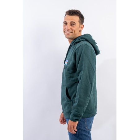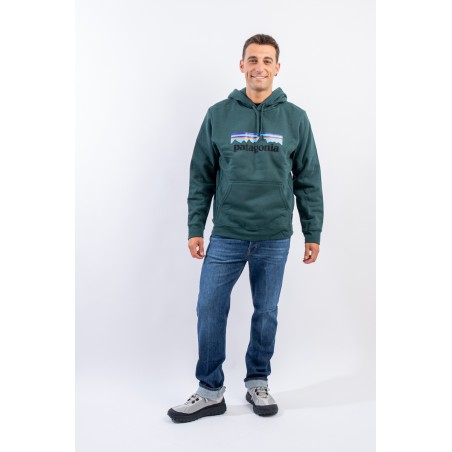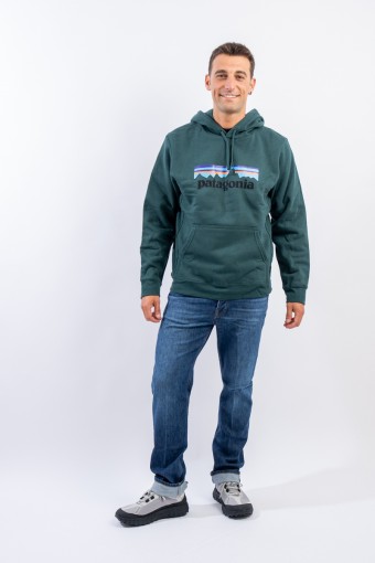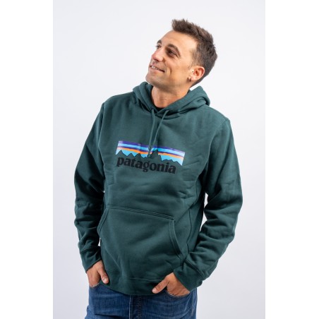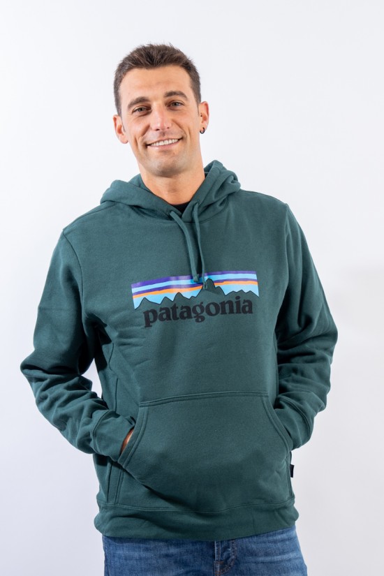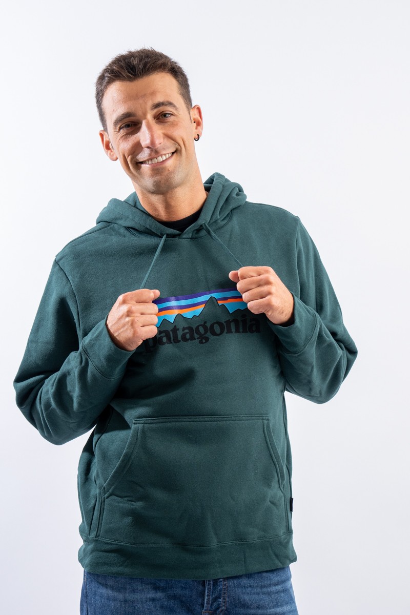 Felpa con cappuccio realizzata con materiali riciclati ottenuti impiegando 30 bottiglie di plastica e circa 408 grammi di scarti tessili di cotone. Caratterizzata dalla maxi stampa e dalla tasca scaldamani applicata sul davanti. Il sistema ecofriendly adottato da Patagonia consente di risparmiare il 95% d'acqua rispetto alla produzione di un capo analogo.