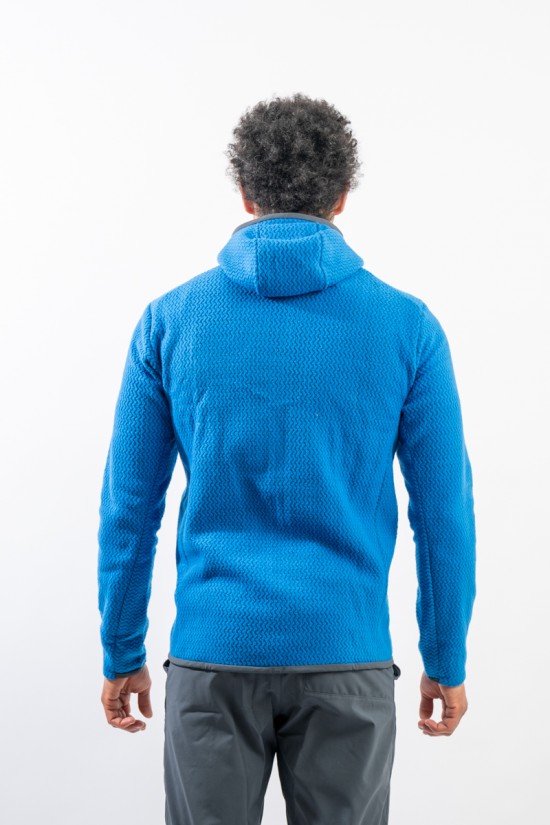 L'R1 Air Full-Zip Hoody è un pile tecnico leggero e traspirante a rapida asciugatura, ideale per le attività all'aperto in montagna. Il tessuto è realizzato in 100% poliestere riciclato ed è strutturato per offrire il massimo comfort nei movimenti, grazie alla sua elasticità. Con cuciture Fair Trade Certified