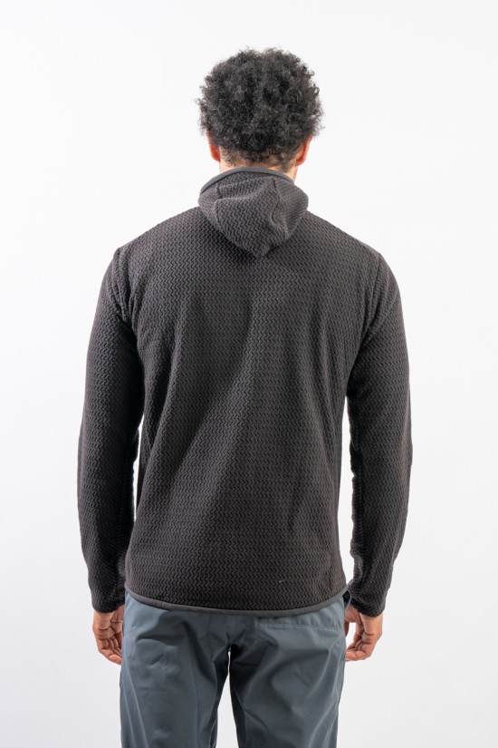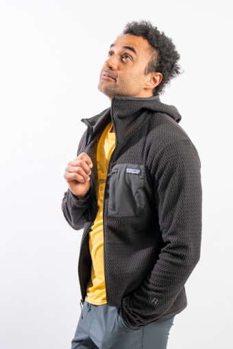 L'R1 Air Full-Zip Hoody è un pile tecnico leggero e traspirante a rapida asciugatura, ideale per le attività all'aperto in montagna. Il tessuto è realizzato in 100% poliestere riciclato ed è strutturato per offrire il massimo comfort nei movimenti, grazie alla sua elasticità. Con cuciture Fair Trade Certified