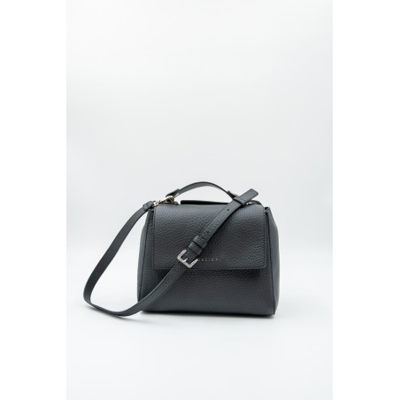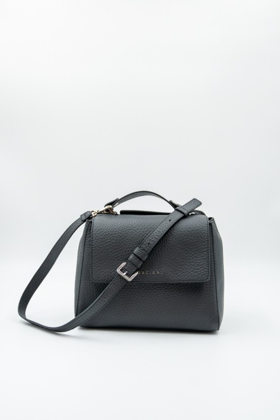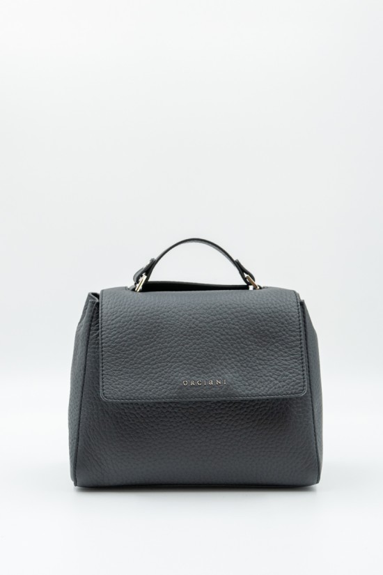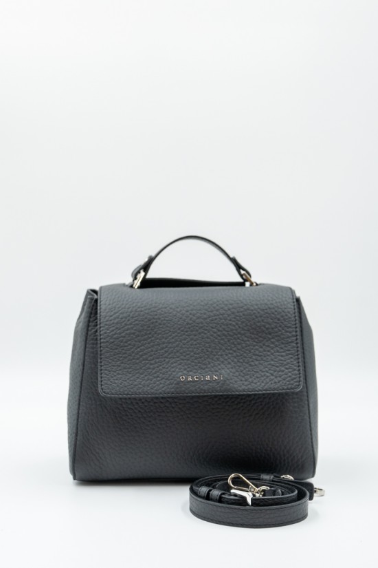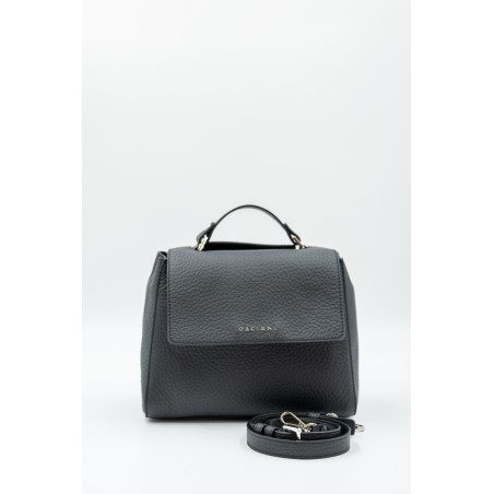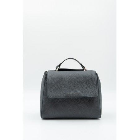 Un'icona del mondo Orciani: la borsa a mano o a tracolla Sveva nella misura piccola. Realizzata in morbida pelle martellata con preziosi dettagli in metallo lucido. In dotazione pratica tracolla di servizio. Chiusura con bottone magnetico. Tasca interna con zip. Made in Italy.