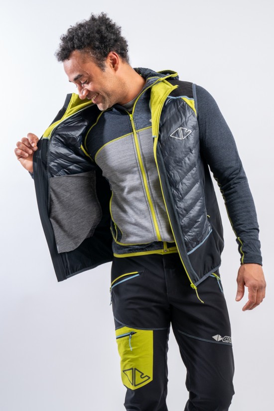 VEST FLAME è un gilet creato per l'alpinismo e per gli sport outdoor in generale. Imbottitura in piuma d'oca JOY a zone, inserti in fleece caldo e traspirante VUELTA italiano. Crazy è molto attenta alle tematiche green pertanto spedisce tutti i prodotti in imballaggi riciclati. FAST & LIGHT.