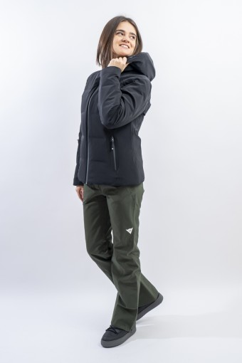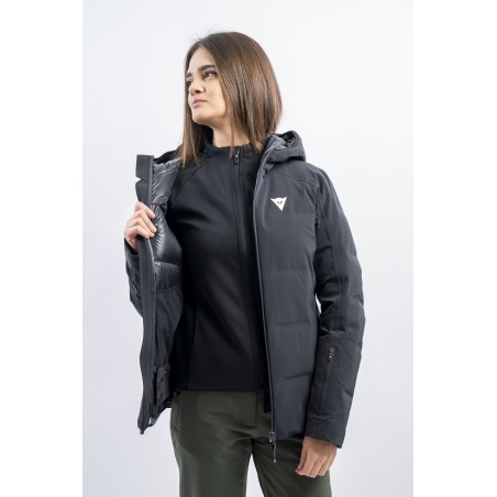 Icona dell'abbigliamento sci Dainese, la giacca imbottita in piuma d'oca, risponde perfettamente all'esigenza del brand di proporre un capo che massimizzasse l'isolazione garantendo comfort in ogni condizione. Il tessuto elasticizzato accoppiato alla membrana Dermizax EV garantisce elevati standard di impermeabilità e traspirazione, mantenuti anche dalla lavorazione a boudin sigillato senza cuciture. Calda e traspirante grazie all'imbottitura in morbido e pregiato piumino, che rende il capo leggero ed estremamente isolante. Design essenziale e sfiancato valorizzano la figura femminile. Ideale in ogni condizione, perfetta sulla neve e in città.