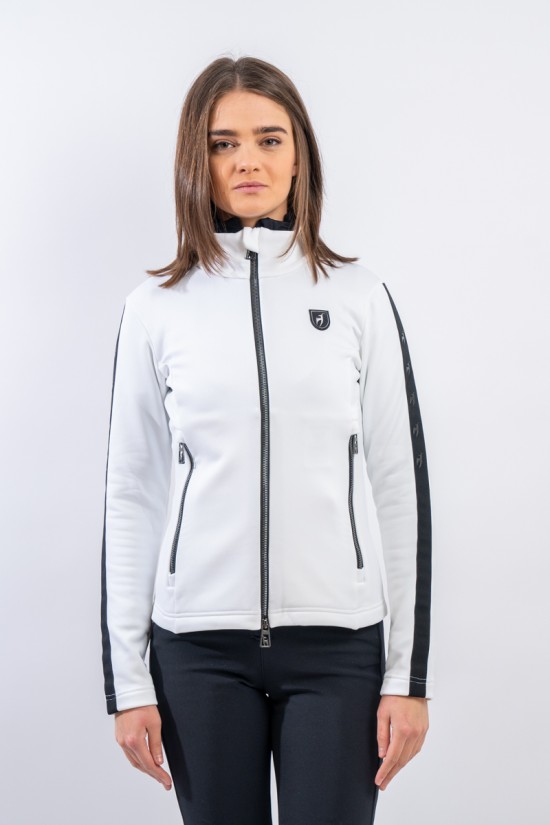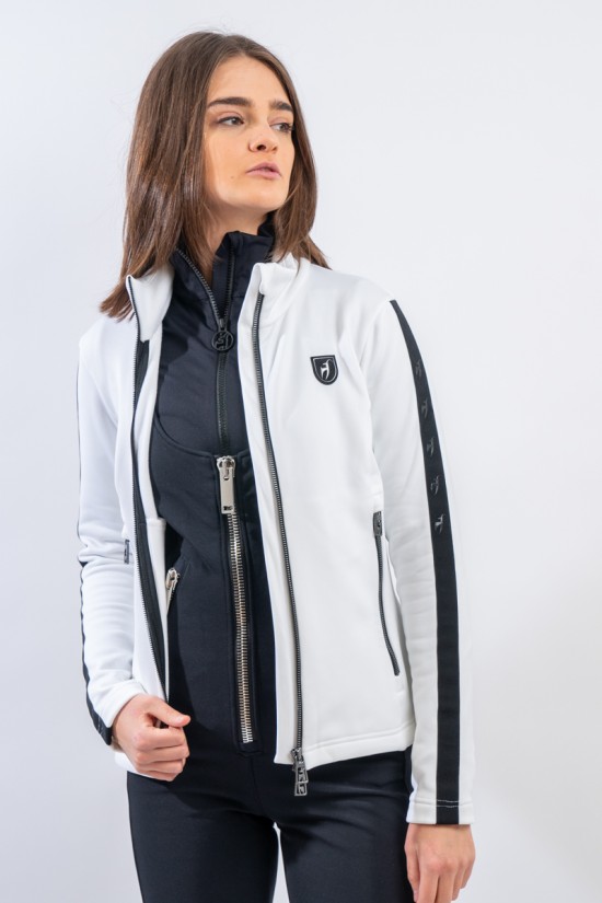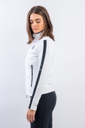 Sottotuta full zip realizzato in tessuto elasticizzato. Caratterizzato dalle fasce elastiche logate che corrono lungo tutta la lunghezza della manica, e dalle zip metal look. Traspirante e caldo è ideale da indossare come strato aggiuntivo sotto la giacca e per praticare ogni sport all'aria aperta.