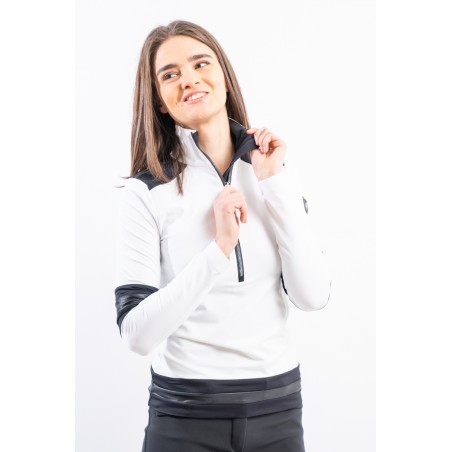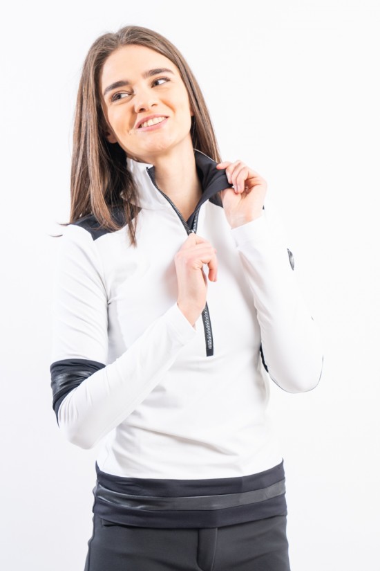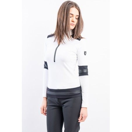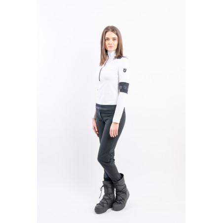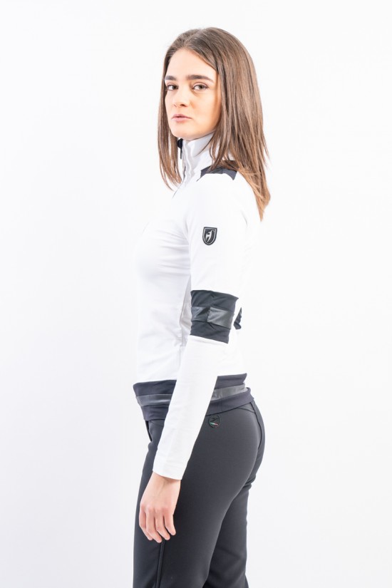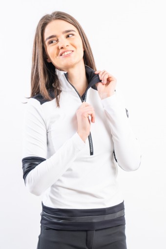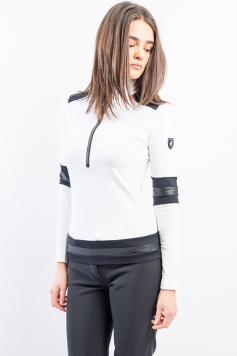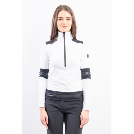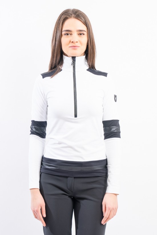 Sottotuta a mezza zip realizzato in tessuto tecnico elasticizzato e felpato. Caratterizzato dalla profonda zip e dagli inserti in tessuto lucido che lo impreziosiscono. Confortevole, caldo e traspirante è ideale in ogni occasione e condizione.