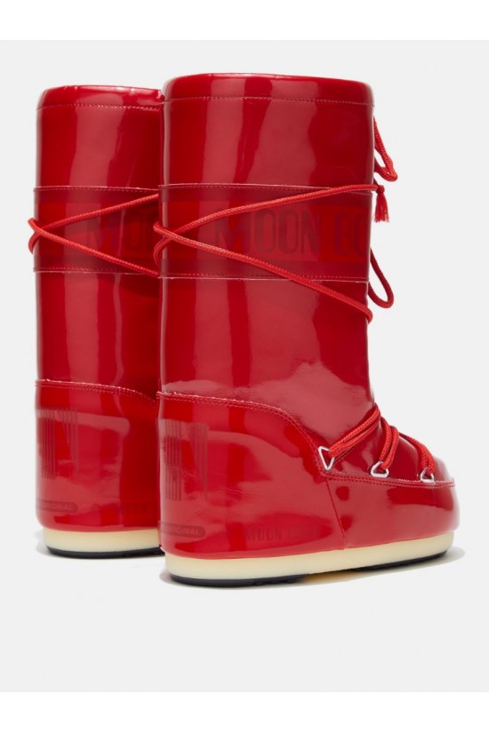 Moon Boot in vinile metallizzato. Eslusiva proposta del modello iconico rivisto in chiave fashion, ricco ed elegante non passa inosservato! Genderless, con suola antiscivolo, ambidestro ed imbottitura isolante che mantiene il piede caldo ed asciutto. Lacci intrecciati sulla parte anteriore. Tallone rinforzato con stampa logo in tono di colore.