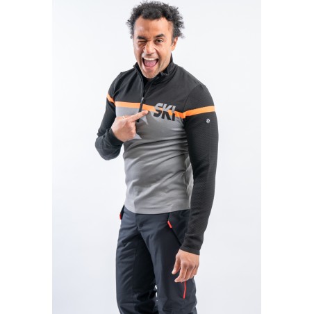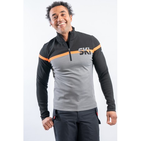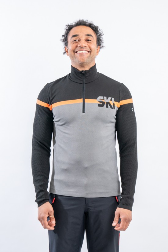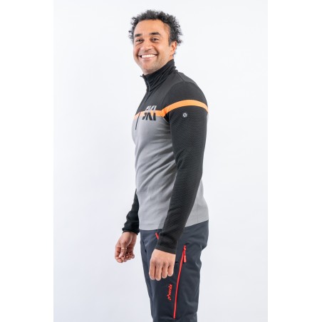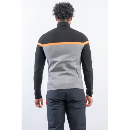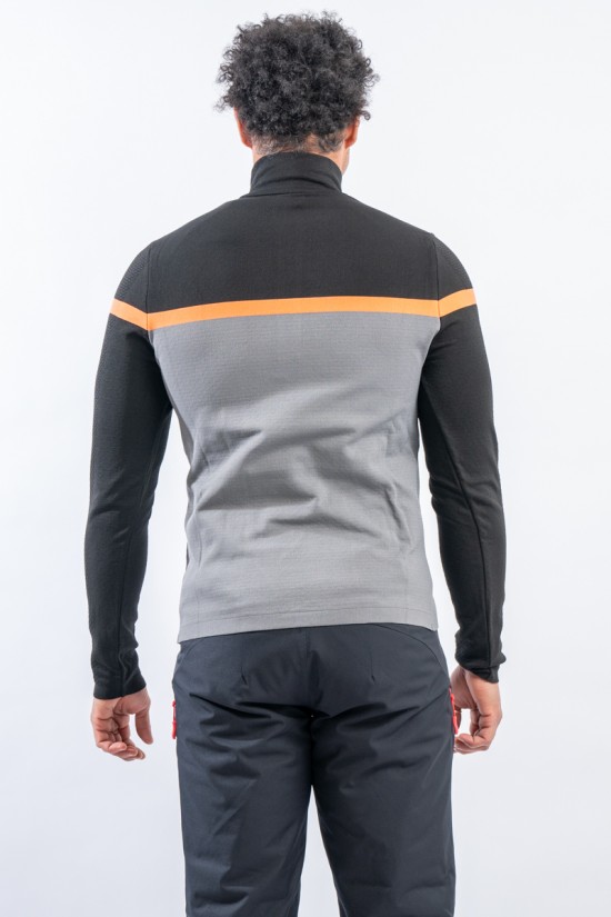 Sottotuta mezza zip in tessuto DH-Tech 400 high performance. Prodotto realizzato con un filato a base di polipropilene estruso caratterizzato da un filo cavo internamente. Questa inedita soluzione rigorosamente Made in Italy rende il prodotto compatto ed elastico per un comfort ed una vestibilità senza eguali, proprio come una seconda pelle.