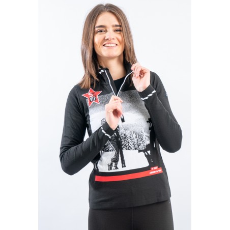 Sottotuta mezza zip in tessuto DH-Tech 400 high performance che rende il capo estremamente caldo, isolante e traspirante. Prodotto realizzato con un filato a base di polipropilene estruso caratterizzato da un filo cavo internamente. Questa inedita soluzione rigorosamente Made in Italy rende il prodotto compatto ed elastico per un comfort ed una vestibilità senza eguali, proprio come una seconda pelle. Ad asciugatura rapido, anti-odore e antibatterico.