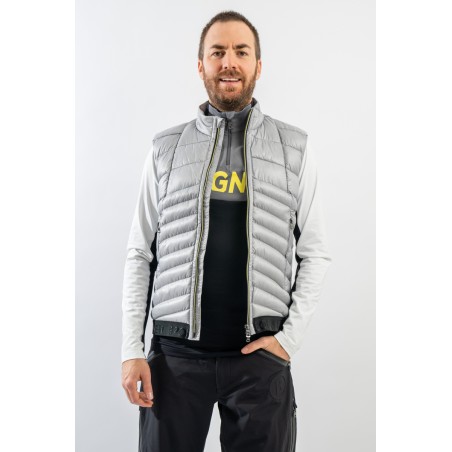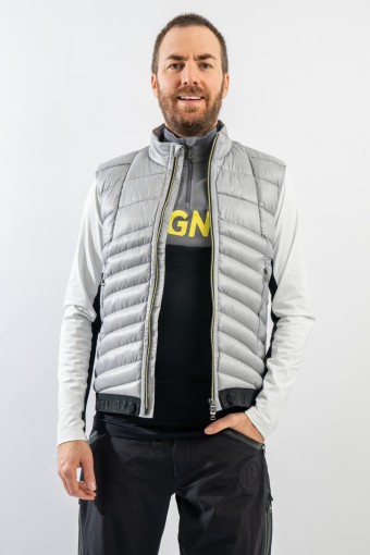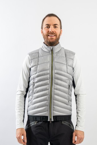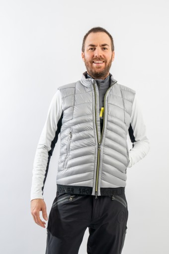 Gilet Joss firmato Bogner. Realizzato in bi-materiale ed imbottito in morbida ovatta nella parte frontale per garantire maggior calore ed isolazione. La parte posteriore in tessuto elasticizzato e felpato offre massimo comfort e libertà di movimento. Ideale come strato aggiuntivo sotto la giacca nelle giornate più rigide e da solo nelle giornate meno fredde.
