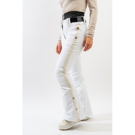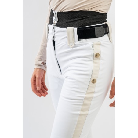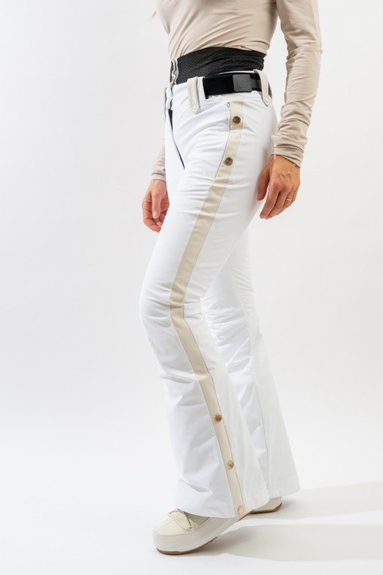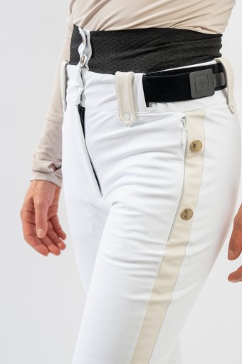 Pantalone sci Ecoline firmato One More. Performante, slim fit e traspirante. Realizzato in tessuto elasticizzato abbinato ad elementi in Appleskin, un materiale ecologico ottenuto dalla lavorazione della mela. Caldo e confortevole è imbottito in morbida ovatta ecofriendly. La linea è arricchita da bottoni metallici loggati sulla lunghezza. La vita, alta ed avvolgente, garantisce ottima aderenza e ne esalta la vestibilità.