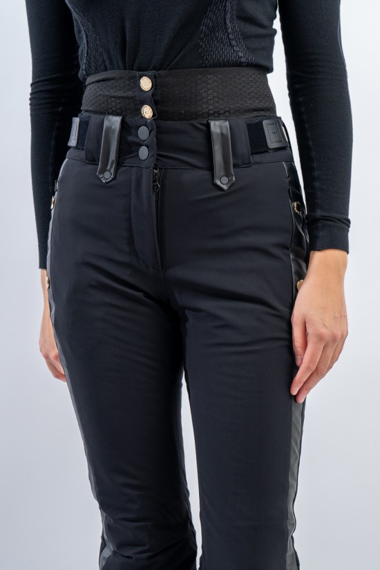 Pantalone sci Ecoline firmato One More. Performante, slim fit e traspirante. Realizzato in tessuto elasticizzato abbinato ad elementi in Appleskin, un materiale ecologico ottenuto dalla lavorazione della mela. Caldo e confortevole è imbottito in morbida ovatta ecofriendly. La linea è arricchita da bottoni metallici loggati sulla lunghezza. La vita, alta ed avvolgente, garantisce ottima aderenza e ne esalta la vestibilità.
