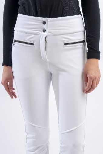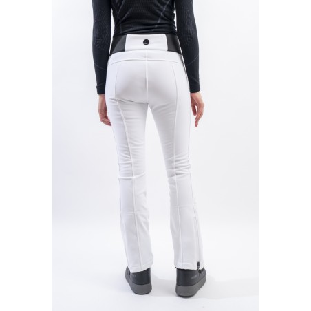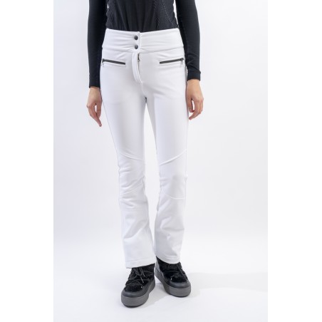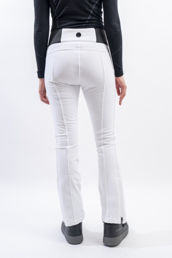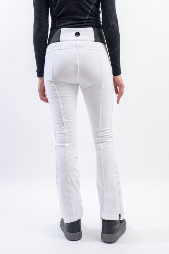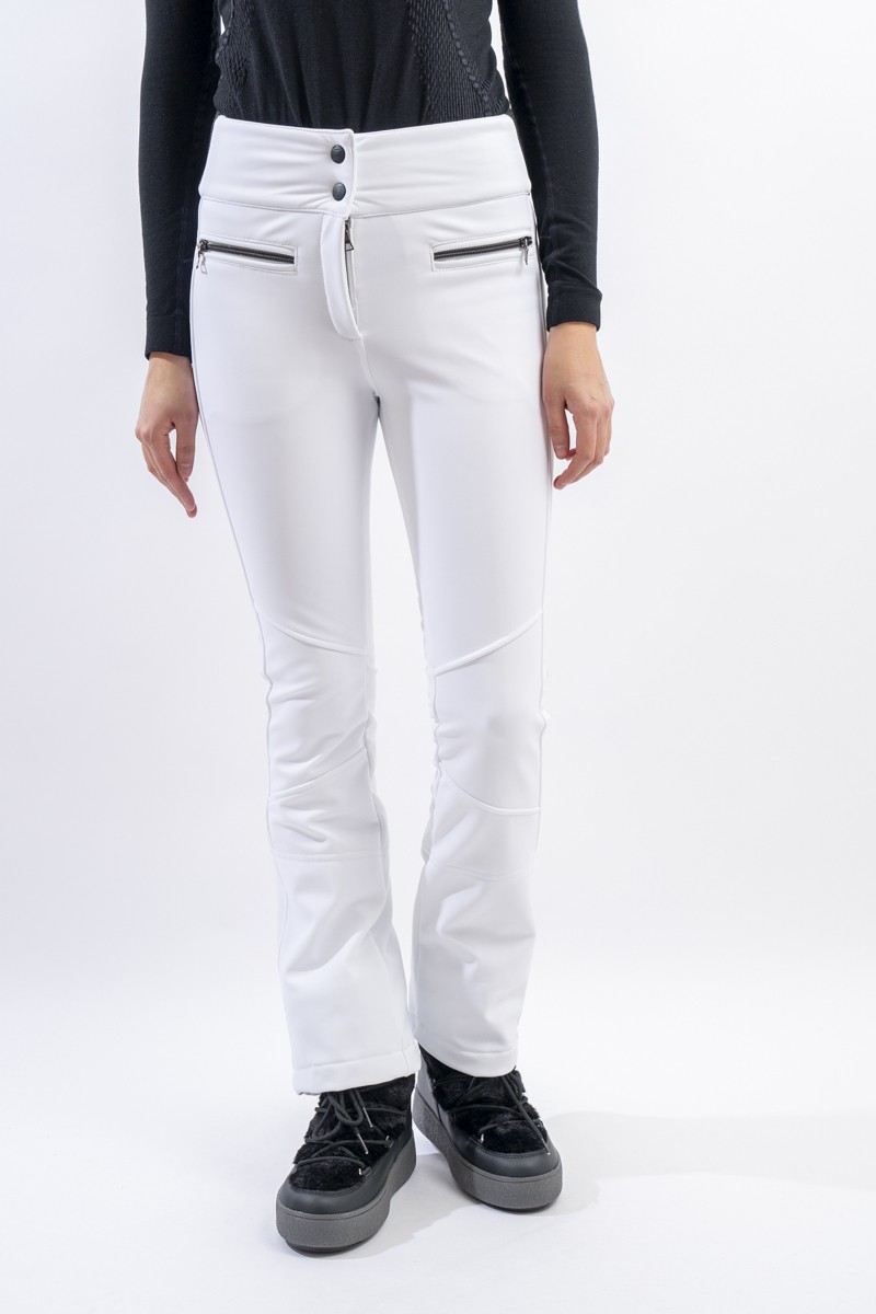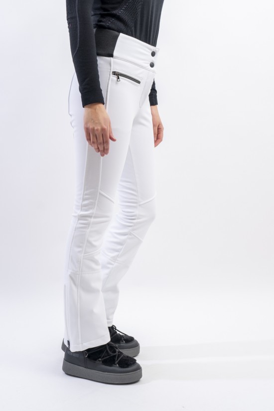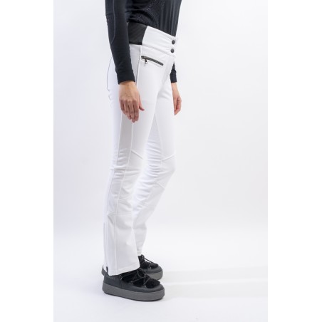 Pantalone sci in tessuto elasticizzato, resistente all'acqua e al vento, traspirante e confortevole. Alto in vita è completo di fasce elastiche che ne aumentano l'adattabilità e migliorano la vestibilità. Slim fit. Le cuciture a vista, sagomate, disegnano la figura esaltandone la forma. Foderato internamente in fleece è caldo e perfetto sulla neve anche nelle giornate più fredde.