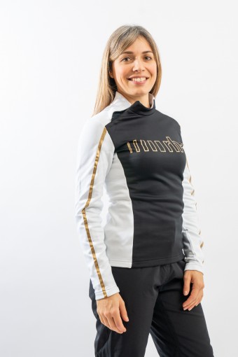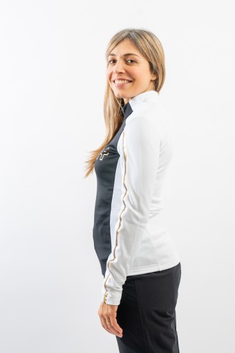 Sottotuta realizzato in tessuto tecnico elasticizzato e felpato. Caldo e traspirante è ideale sotto la giacca come strato aggiuntivo. Look sportivo e versatile.