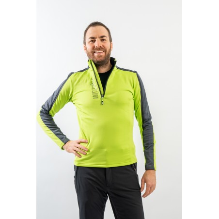 Sottotuta full zip Ecofriendly di Zero Rh, è realizzato con materiale riciclato e facendo attenzione a ridurre le immissioni nell'ambiente. Elasticizzato e felpato è caldo e confortevole. Il tessuto tecnico e traspirante, facilita il movimento. Versatile è ideale sotto la giacca da sci o come complemento per ogni attività sportiva.