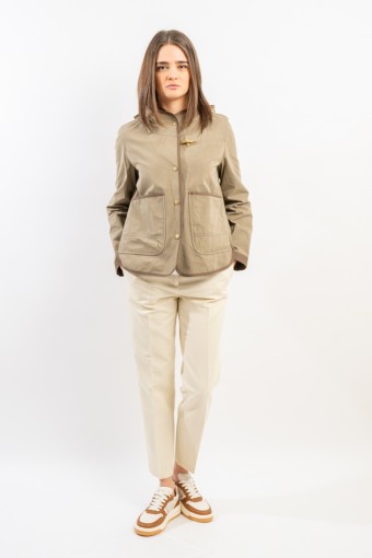 Pantalone a sigaretta realizzato in gabardine misto lino tinto in filo. Chiusura con zip e bottone, è impreziosit dall'iconico gancio Fay. Taglio classico e piega stirata, è un pantalone versatile e senza tempo, perfetto dall'ufficio al tempo libero!