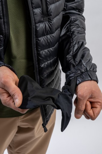 Il piumino corto Althaus è un capo outdoor che fa parte della collezione esclusiva Moncler Grenoble Day-namic. Realizzato in micro ripstop riciclato presenta caratteristiche antivento, antipioggia e traspiranti. L'imbottitura in piumino d'oca garantisce calore e leggerezza, inoltre l'imbottitura con sistema isolante Polartec® Alpha® active riciclato ha ottime proprietà di termoregolazione e traspirazione. Dotato di guanti estraibili Touchscreen all'interno dell'orlo delle maniche.