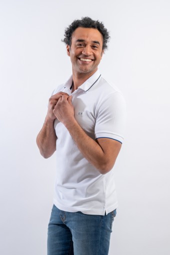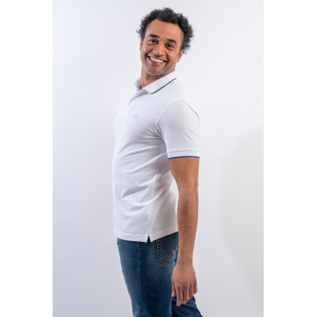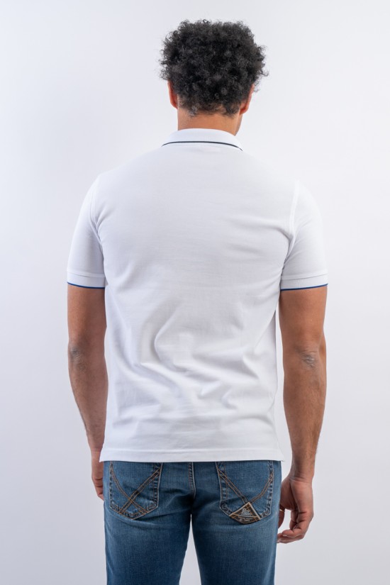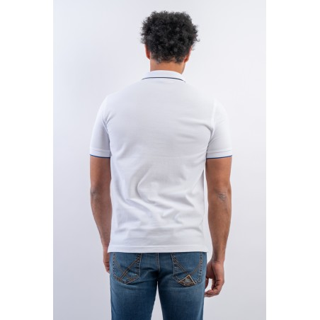 Polo 2 bottoni a manica corta realizzata in piquèt stretch. Spacchi laterali sul fondo. Colletto e bordo maniche a costine. Caratterizzata da colori vivaci con profili a contrasto. Logo ricamato sul petto. Slim fit.