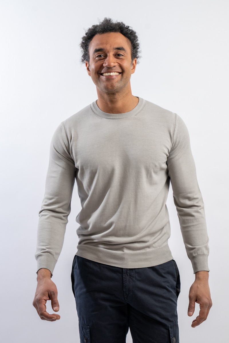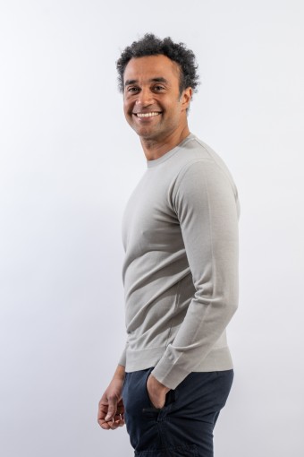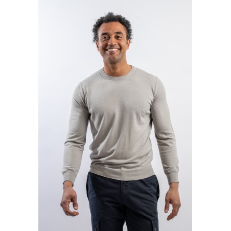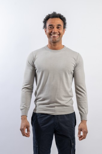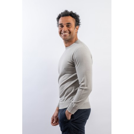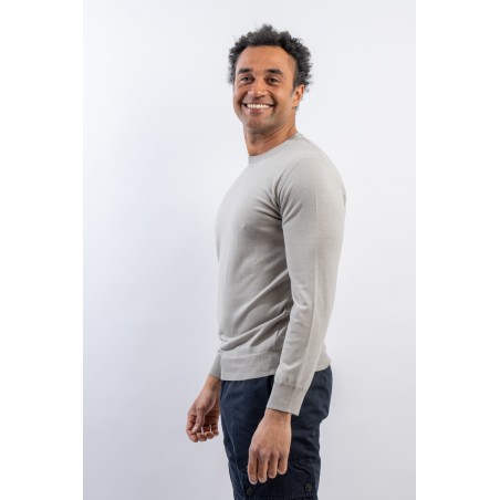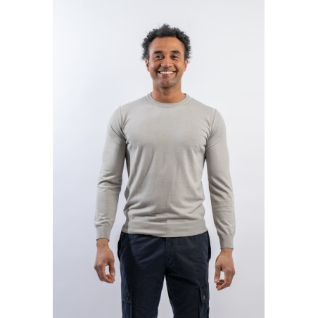 Maglia girocollo in 100% cotone con trattamento Stone. Punto rasato finezza 14 e vestibilità slim. Polsini, collo e fondo rifiniti a costine. Made in Italy.