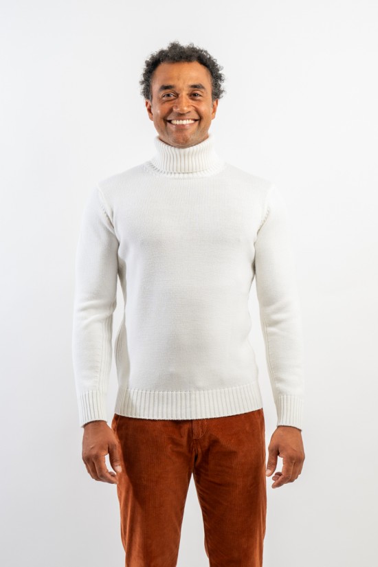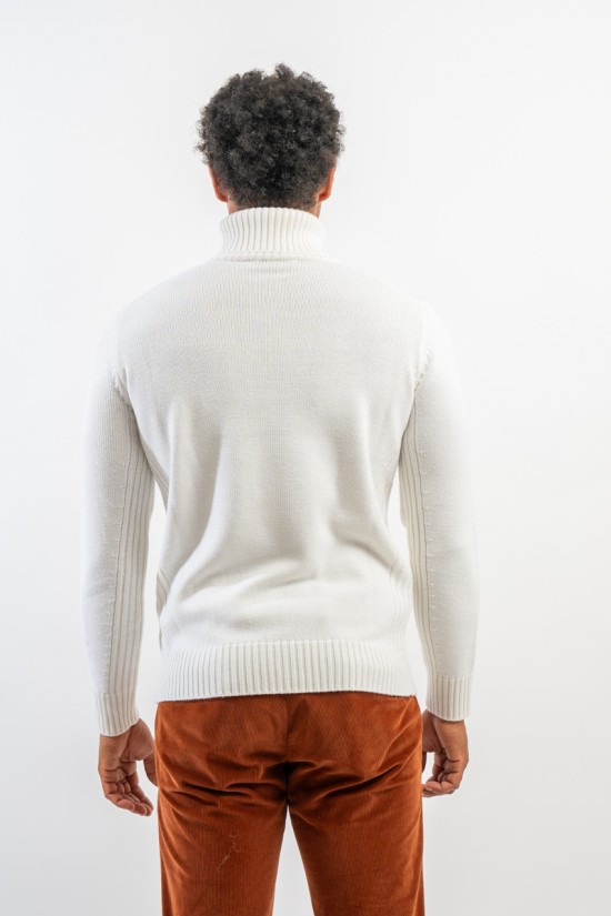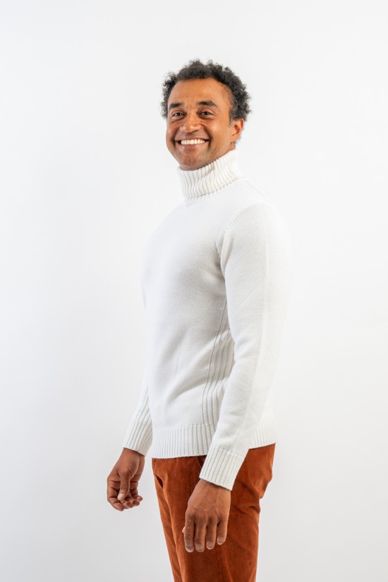 Maglia dolcevita con coste laterali per una vestibilità perfetta. Manica a giro, collo polsini e fondo a costine elasticizzate. Made in Italy.