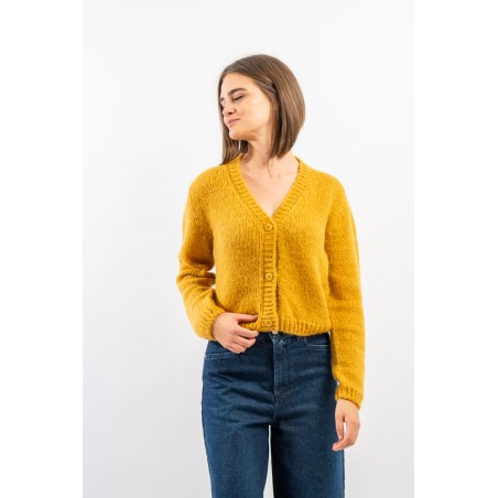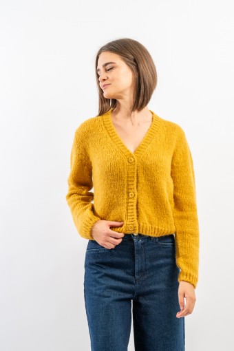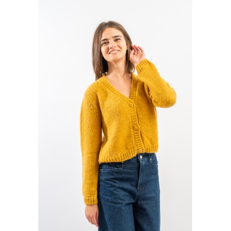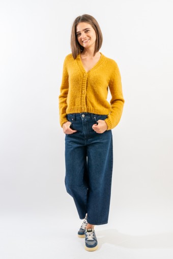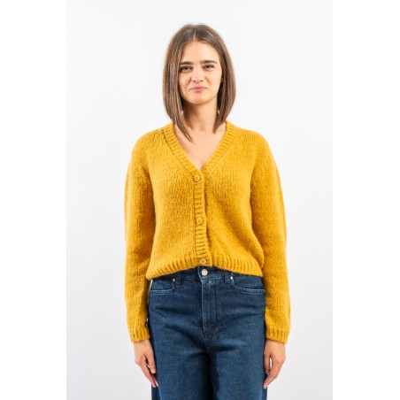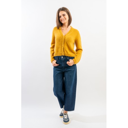 Cardigan scollo a V Niu a manica lunga. Realizzata in un filato misto lana con lavorazione a maglia larga presenta scollo, fondo e polsi a costine. Dalla linea essenziale e vestibilità regular, è versatile e funzionale.
