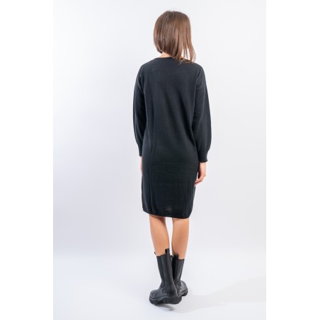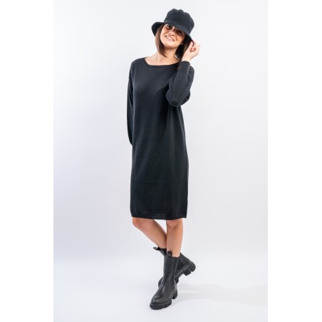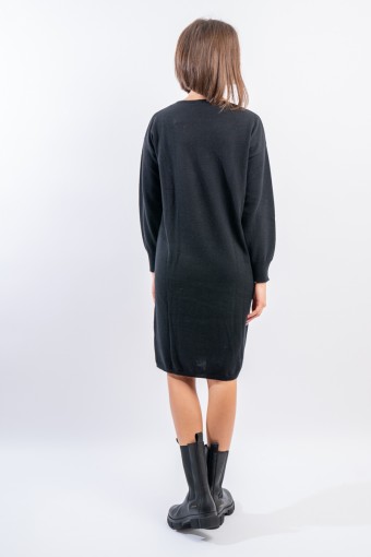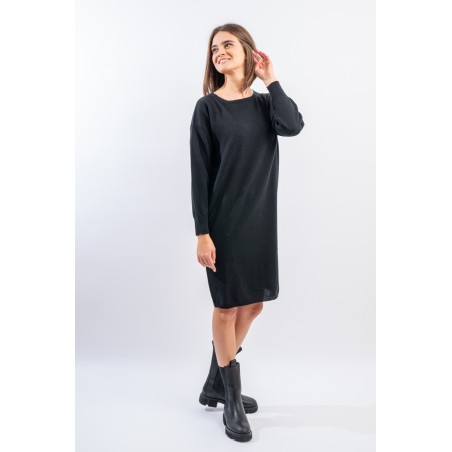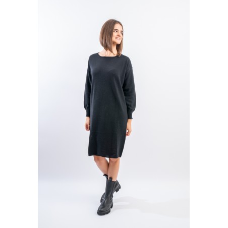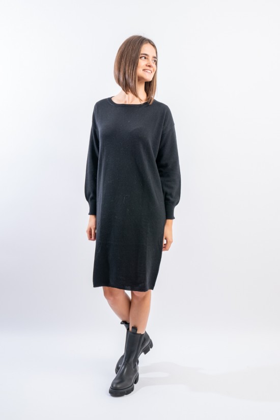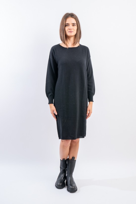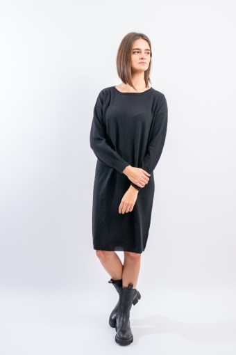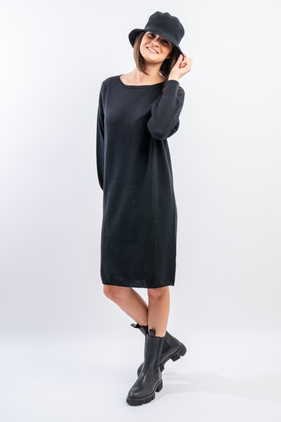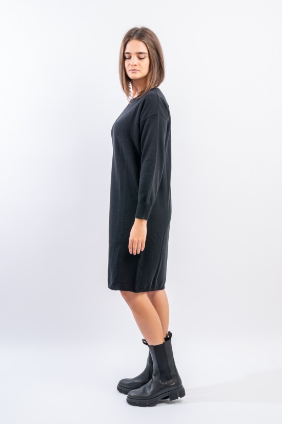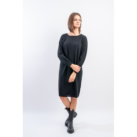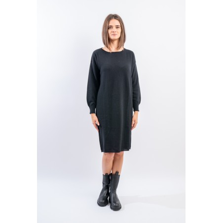 Abito in maglia con lavorazione a maglia rasata. Girocollo e manica lunga presenta una linea essenziale e versatile che si adatta a qualsiasi occasione. Made in Italy.