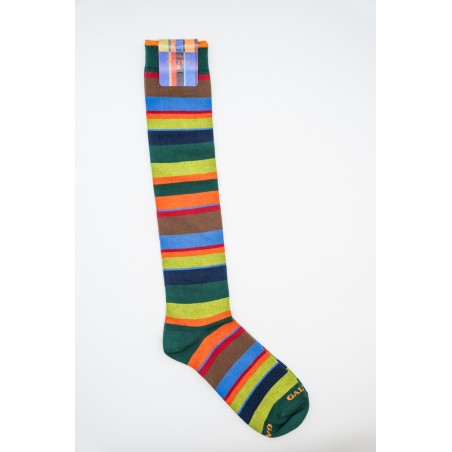 Calze lunghe realizzate in cotone leggero, morbide al tatto, con fantasia mille righe. Fascetta, tallone e punta con colori tono su tono. Sono le calze perfette da abbinare ad ogni look. Gallo è qualità Made in Italy e eccellenza dal 1927.
