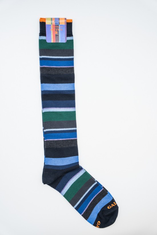 Calze lunghe realizzate in cotone leggero, morbide al tatto, con fantasia mille righe. Fascetta, tallone e punta con colori tono su tono. Sono le calze perfette da abbinare ad ogni look. Gallo è qualità Made in Italy e eccellenza dal 1927.