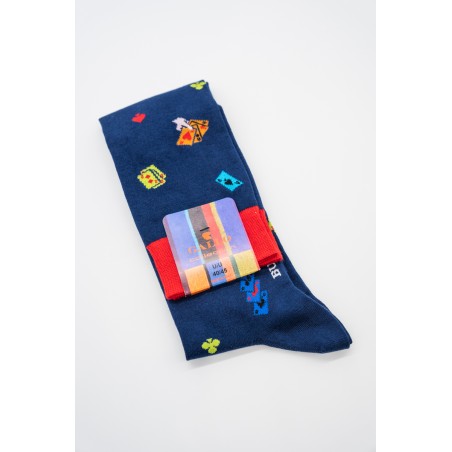 Calze lunghe realizzate in cotone leggero, con piccole carte da gioco ricamate. Fascetta, tallone e punta con colori a contrasto. Sono le calze perfette da abbinare ad ogni look. Gallo è qualità Made in Italy e eccellenza dal 1927.