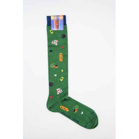 Calze lunghe realizzate in cotone leggero, con piccole carte da gioco ricamate. Fascetta, tallone e punta con colori a contrasto. Sono le calze perfette da abbinare ad ogni look. Gallo è qualità Made in Italy e eccellenza dal 1927.