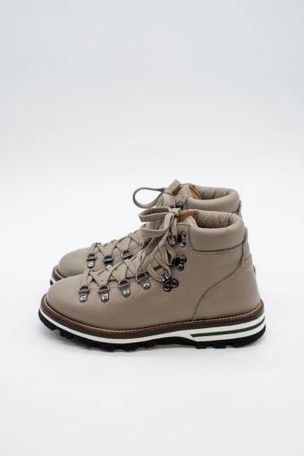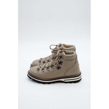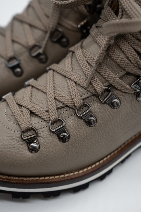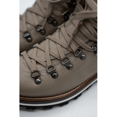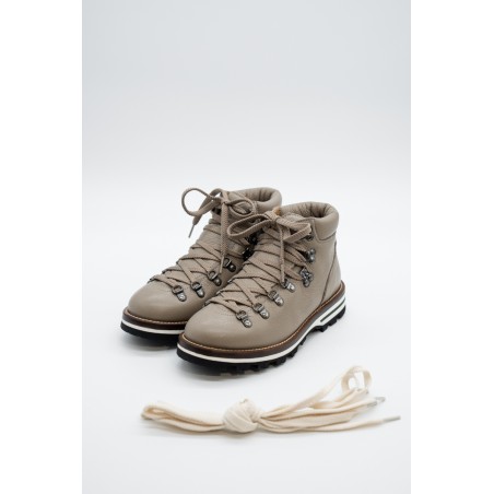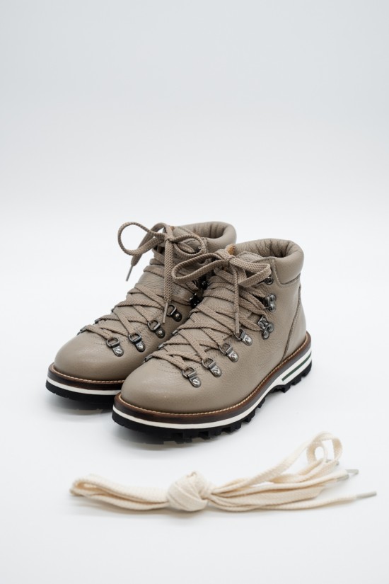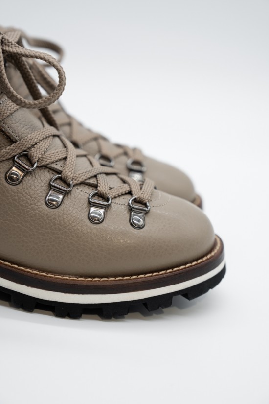 Mon Piz è il marchio che prende ispirazione dalle vette alpine, crea artigianalmente e 100% Made in Italy i suoi prodotti. Il modello Cortina è realizzato in morbida pelle martellata, lo proponiamo nella colorazione creta. Perfetta per la montagna grazie alla suola in vibram e al guardolo in cuoio, è ideale anche per la città con il suo design allungato ed elegante. Nata dall'incontro tra stile urbano e classico montano Mon Piz è la pedula perfetta in ogni condizione e situazione. Ogni dettaglio racchiude abilità artigiane e qualità italiana per il nuovo must have dell'inverno presente e futuro!