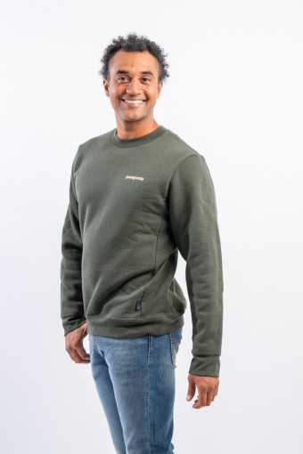 Felpa girocollo di Patagonia realizzata, in tessuto felpato e spazzolato, grazie all'utilizzo di soli materiali riciclati. Questi materiali sono ottenuti da scarti tessili e da bottiglie di plastica. Polsini e fondo lavorati a costine elasticizzati per garantire miglior aderenza al corpo. Impreziosita dal logo lettering stampato in rilievo sul petto. Versatile e confortevole da indossare per qualsiasi attività.