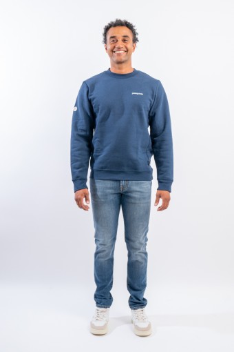 Felpa girocollo di Patagonia realizzata, in tessuto felpato e spazzolato, grazie all'utilizzo di soli materiali riciclati. Questi materiali sono ottenuti da scarti tessili e da bottiglie di plastica. Polsini e fondo lavorati a costine elasticizzati per garantire miglior aderenza al corpo. Impreziosita dal logo lettering stampato in rilievo sul petto. Versatile e confortevole da indossare per qualsiasi attività.