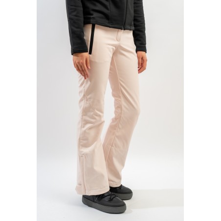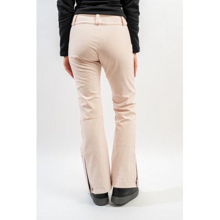 Pantalone sci realizzato in tessuto softshell stretch felpato all'interno. Impermeabilie e traspirante. Vestibilità slim e vita alta rinforzata sulla zona lombare. Completa di passanti per la cintura per una miglior adattabilità. Rifinito con ghetta antineve e zip impermeabili, è ottimo sulla pista in ogni condizione.