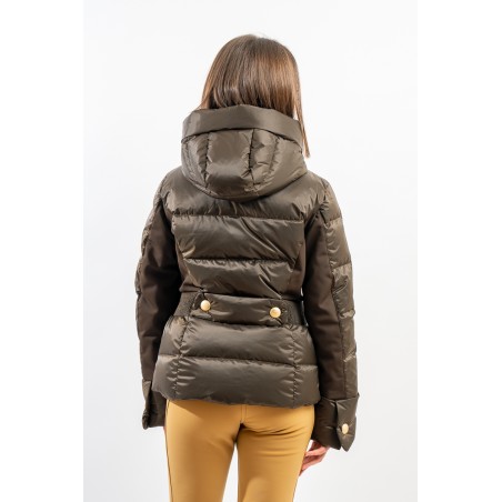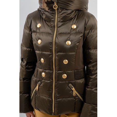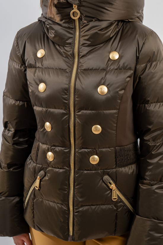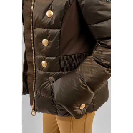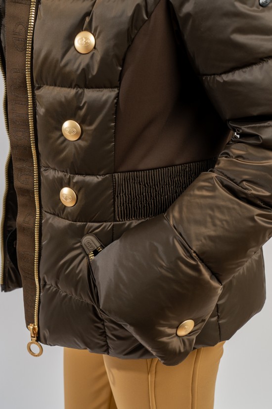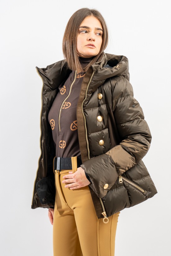Bouton è il caldo e morbido piumino di Goldbergh dal look elegante e raffinato. Stile e performance si fondono in un capo d'effetto, attento a dettagli funzionali per un uso ottimale del capo. La perfetta aderenza data dai polsini e la ghetta antineve, garantisce massima protezione. Arricchito da inserti metal look a contrasto e dalle fasce elastiche sui fianchi che sottolineano il punto vita. Cappuccio fisso con collo alto ed avvolgente, per affrontare al meglio anche le condizioni più estreme.