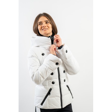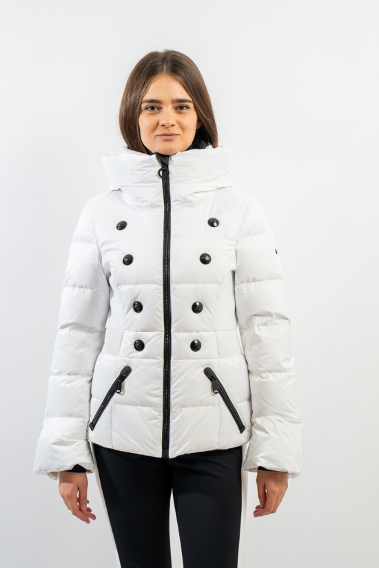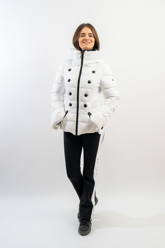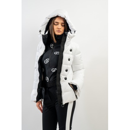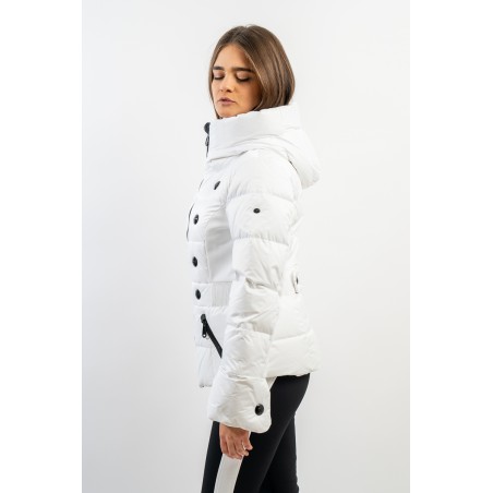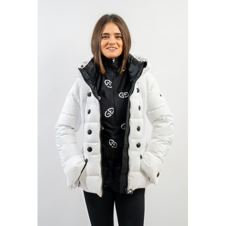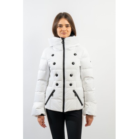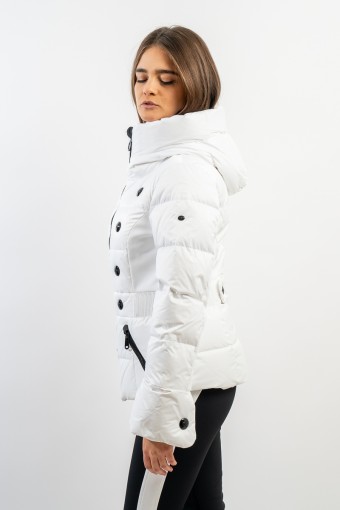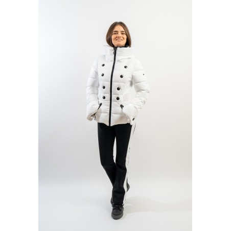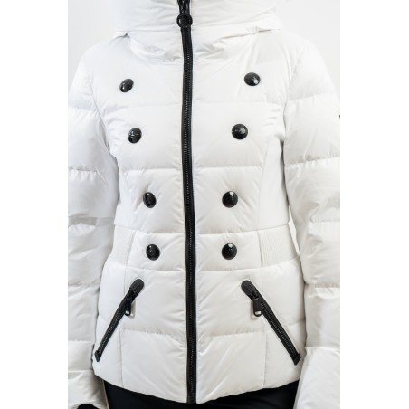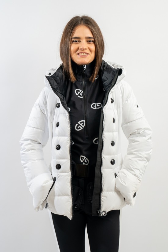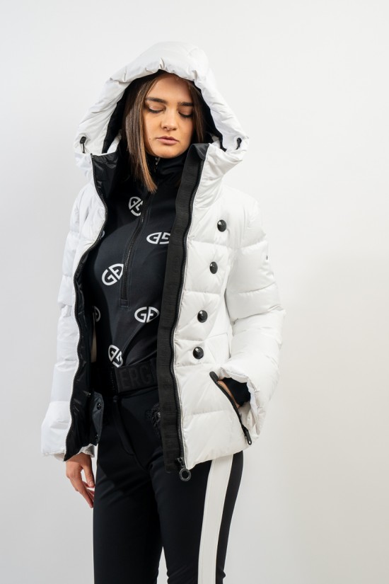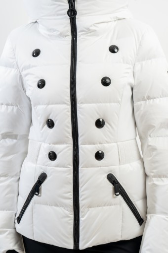 Bouton è il caldo e morbido piumino di Goldbergh dal look elegante e raffinato. Stile e performance si fondono in un capo d'effetto, attento a dettagli funzionali per un uso ottimale del capo. La perfetta aderenza data dai polsini e la ghetta antineve, garantisce massima protezione. Arricchito da inserti metal look a contrasto e dalle fasce elastiche sui fianchi che sottolineano il punto vita. Cappuccio fisso con collo alto ed avvolgente, per affrontare al meglio anche le condizioni più estreme.