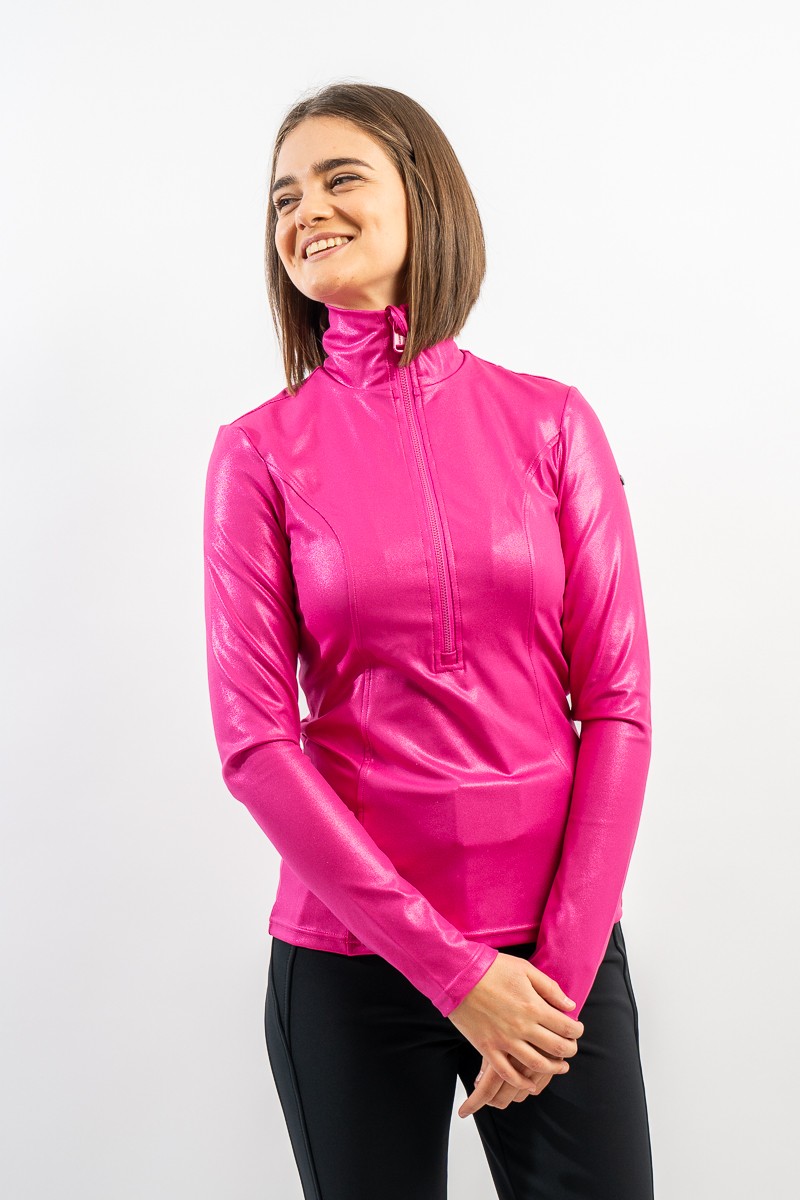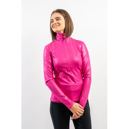 Sottotuta mezza zip in tessuto elasticizzato ad effetto metallizzato. Costruito con tecnologia Silvadur ad azione antibatterica. Vestibilità slim. Traspirante e leggero è adatto a tutti gli sport all'aria aperta.