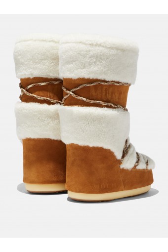 Chic e stile intramontabile per questo Icon di Moon Boot rivisitato in chiave fashion, per un aprèe-ski effetto wow! Realizzato in morbida pelle scamosciata e shearing 100% idrorepellente. L'imbottitura isolante mantiene il piede caldo e asciutto. Lacci bicolor ad intreccio anteriorie fascia logata. Il battistrada è antiscivolo per una presa ottimale su ogni tipo di terreno