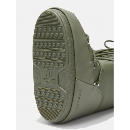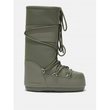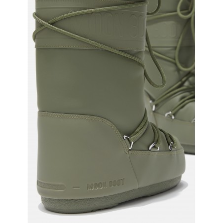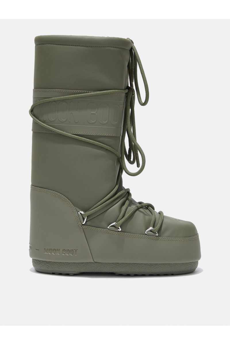 Modello iconico di Moon Boot rivestito in resistent rubber. Design genderless e ambidestro. L'imbottitura isolante mantiene il piede caldo ed asciutto. Lacci intrecciati sulla parte anteriore e alta fascia logo. Il tallone è rinforzato e la suola è antiscivolo, per mantenere la presa su ogni tipo di terreno.