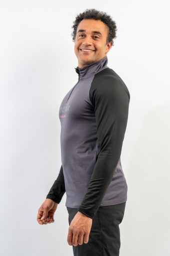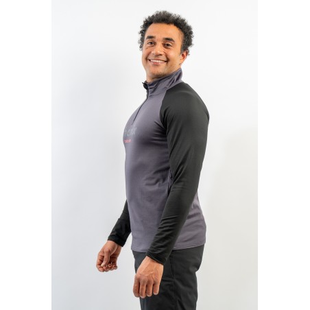 Sottotuta con mezza zip. Caldo, confortevole e traspirante. Realizzato in tessuto elasticizzato e felpato all'interno. Logo istituzionale stampato sul petto e maniche a contrasto.