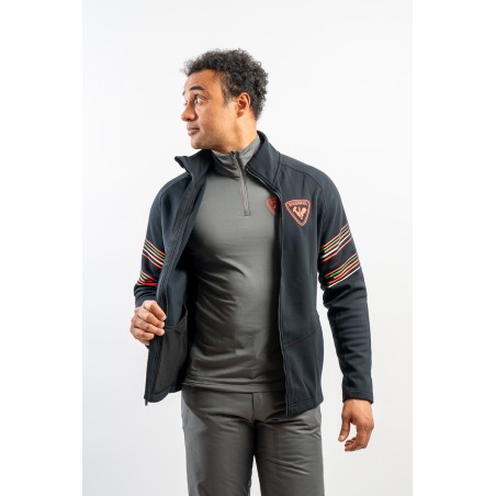Sottotuta full zip Classique Hero Clim firmato Rossignol. Realizzato in tessuto elasticizzato e foderato in morbido pile, è confortevole e dona una piacevole sensazione di calore. Traspirante ed isolante. Sul dorso e sulle maniche inserti gommati che celebrano la velocità a cui Rossignol si è ispirata nella progettazione della linea Hero. Ideale sotto la giacca da sci come strato intermedio per una maggiore isolazione nelle giornate più fredde.