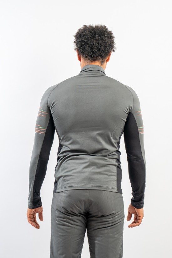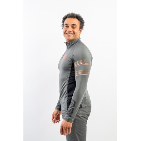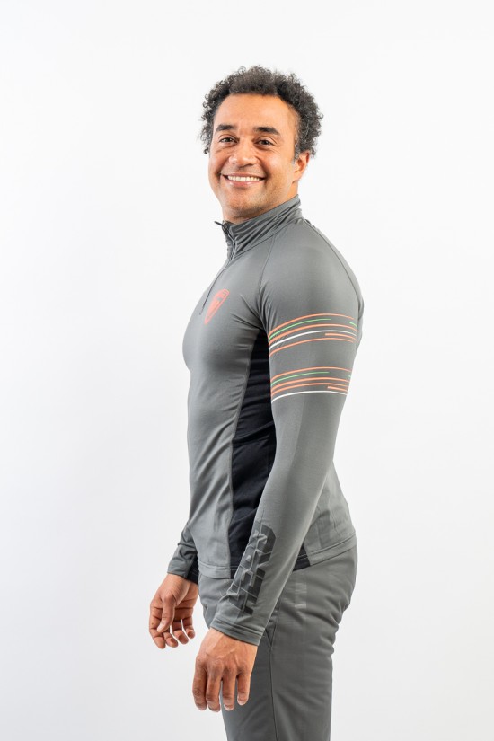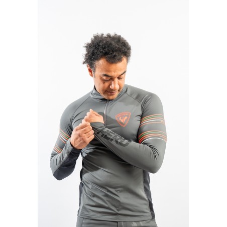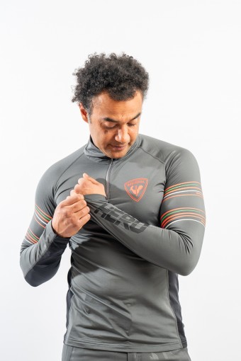 Sottotuta mezza zip in tessuto elasticizzato felpato e traspirante. Arricchito dall'inserto rinfrangente sulla zip e da quelli a contrasto sulle braccia. Altamente funzionale e confortevole è perfetto sotto la giacca da sci e per ogni tipo sport.
