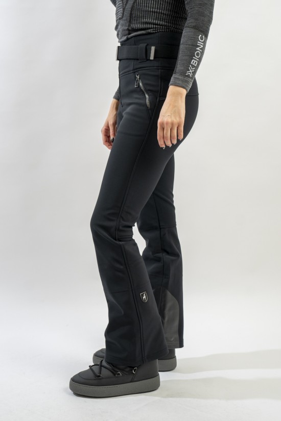 Taglio femminile e materiali funzionali, caratterizzano Olivia, il pantalone sci firmato Toni Sailer. Realizzato in Schoeller® Comfortshell bluesign®, un tessuto elasticizzato e confortevole, antivento ed idrorepellente. L'interno è foderato in morbido pile, a garanzia di una miglior isolazione e maggior sensazione di calore. Cuciture preformate e cintura in vita consentono una migliore adattabilità. Il design essenziale ed il particolare tessuto si adattano perfettamente alla figura, valorizzandola. Dotato di ghetta antineve al fondo è ideale per tutte le attività outdoor.