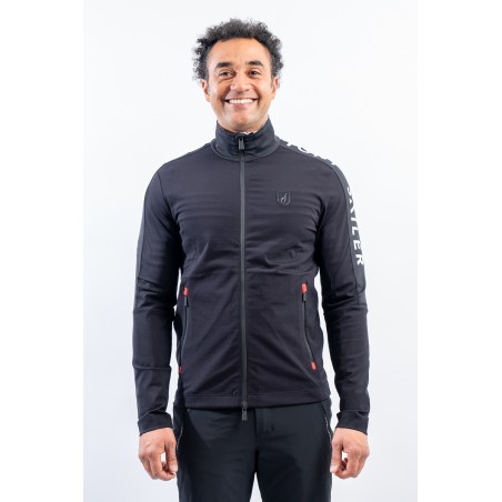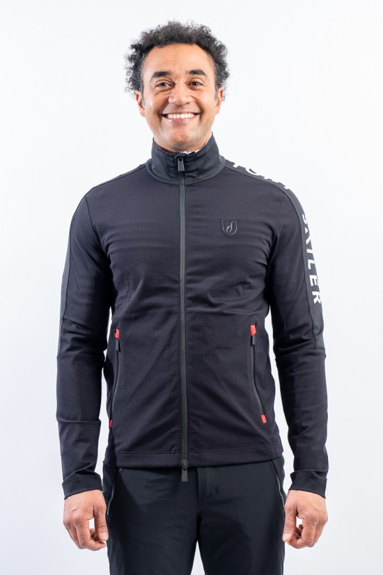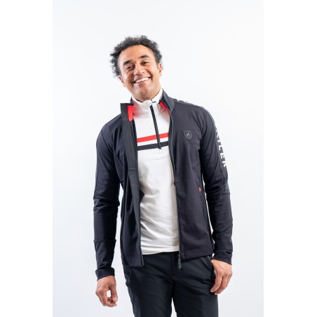 Sottotuta full zip realizzato in tessuto tecnico elasticizzato. Caratterizzato dalla fascia logata su spalla e manica per un look sportivo e dinamico. Dotato di due pratiche taasche laterali chiuse con zip. Altamente traspirante e confortevole è perfetto sotto la giacca da sci o da solo per praticare sport all'aria aperta.