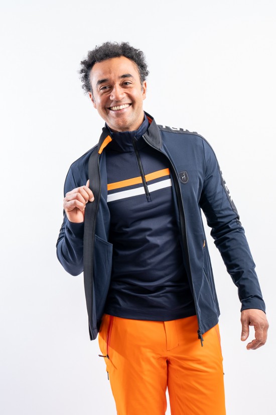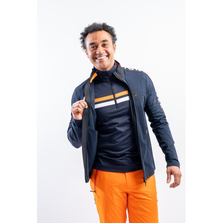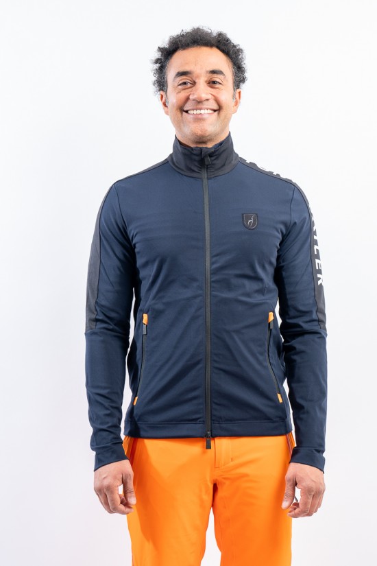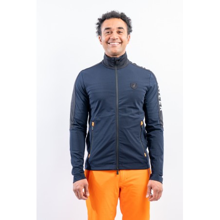 Sottotuta full zip realizzato in tessuto tecnico elasticizzato. Caratterizzato dalla fascia logata su spalla e manica per un look sportivo e dinamico. Dotato di due pratiche taasche laterali chiuse con zip. Altamente traspirante e confortevole è perfetto sotto la giacca da sci o da solo per praticare sport all'aria aperta.