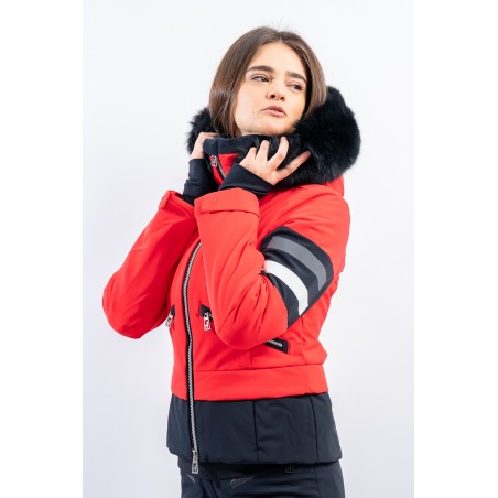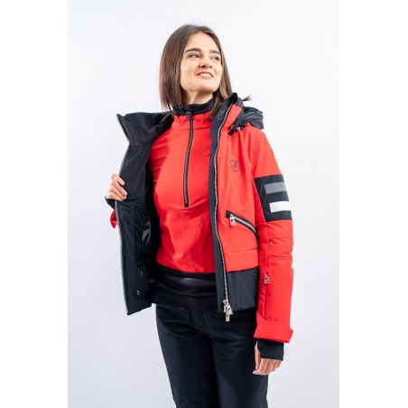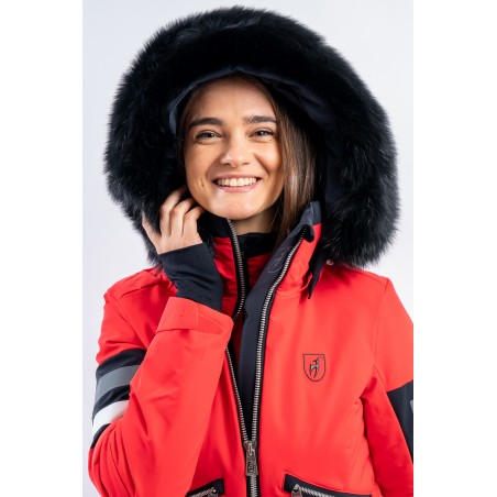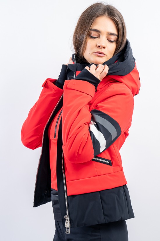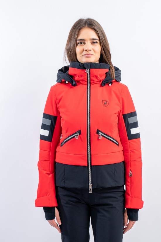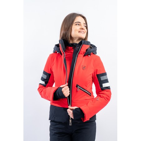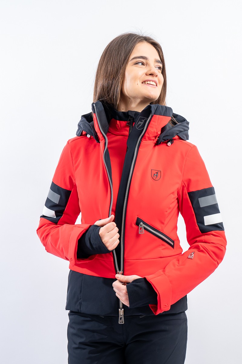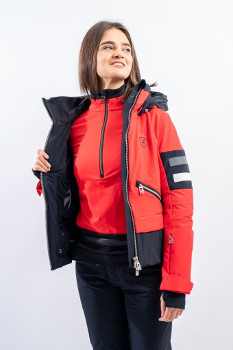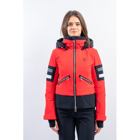 Malou, sportiva e vivace dal look "doppia giacca" dato dalla fascia a contrasto sul fondo. Caratterizzata dal tessuto elasticizzato arricchito da fasce di colore a contrasto. Accoppiato alla membrana è impermeabile e traspirante. Imbottitura in morbida ovatta è calda ed isolante. Da sempre Toni Sailer riserva particolare cura nei dettagli e questo modello, ricco di elementi distintivi, lo dimostra.