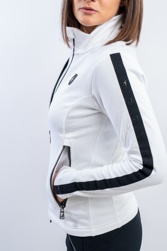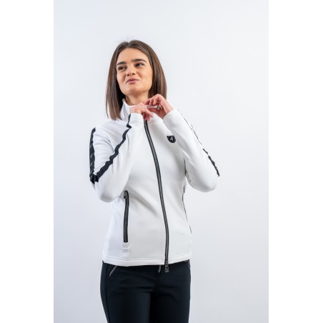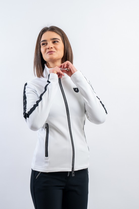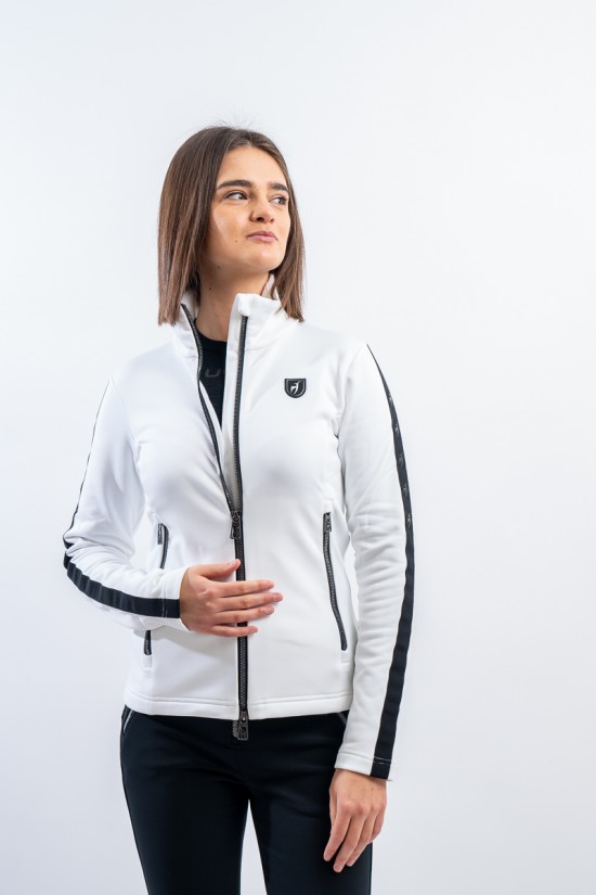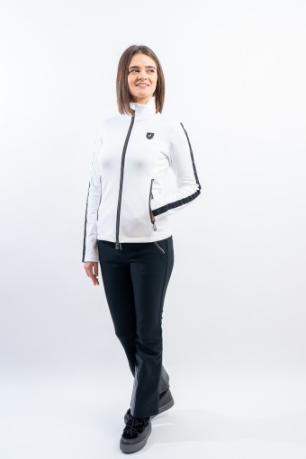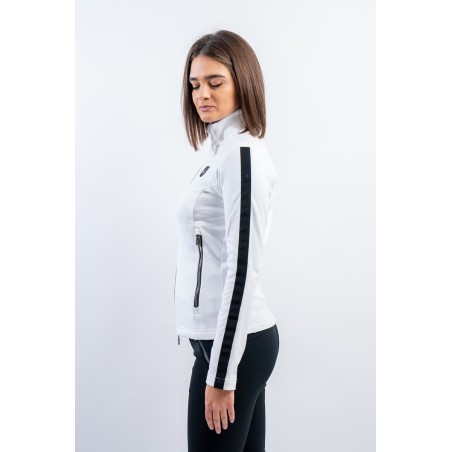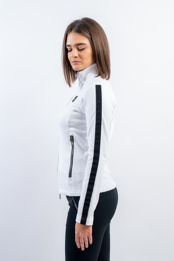 Sottotuta full zip realizzato in tessuto elasticizzato e felpato. Caratterizzato dalle fasce elastiche logate che corrono lungo tutta la lunghezza della manica, e dalle zip metal look. Traspirante e caldo è ideale da indossare come strato aggiuntivo sotto la giacca e per praticare ogni sport all'aria aperta.