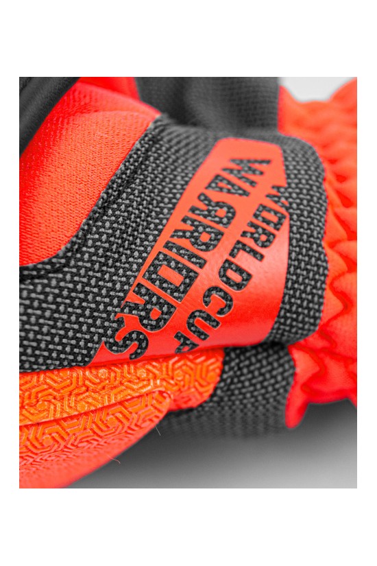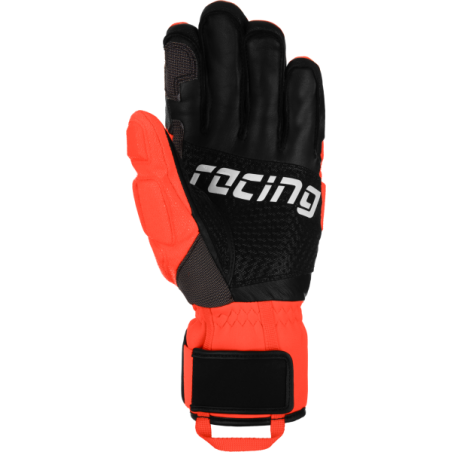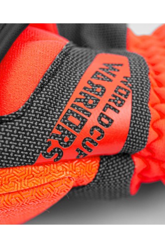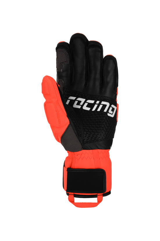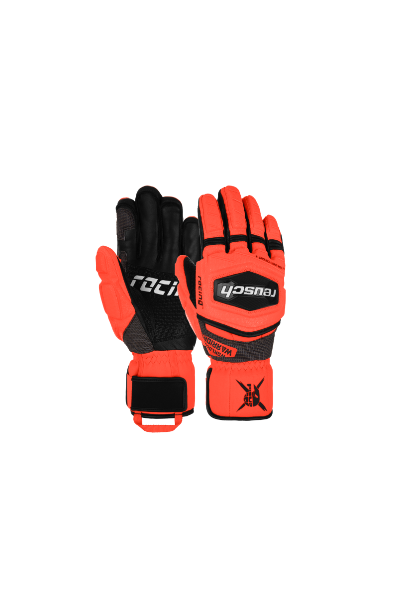 Guanto gara, ispirato alla WorldCup firmato Reusch. Inserti imbottiti a protezione di dita e nocche. Protezione in plastica rigida sul dorso. Polsino rinforzato e chiudibile a velcro. La leggera ovatta in Primaloft è calda senza creare ingombro. Questo modello rappresenta il connubio perfetto tra la ricerca di prestazione, comfort e design.
